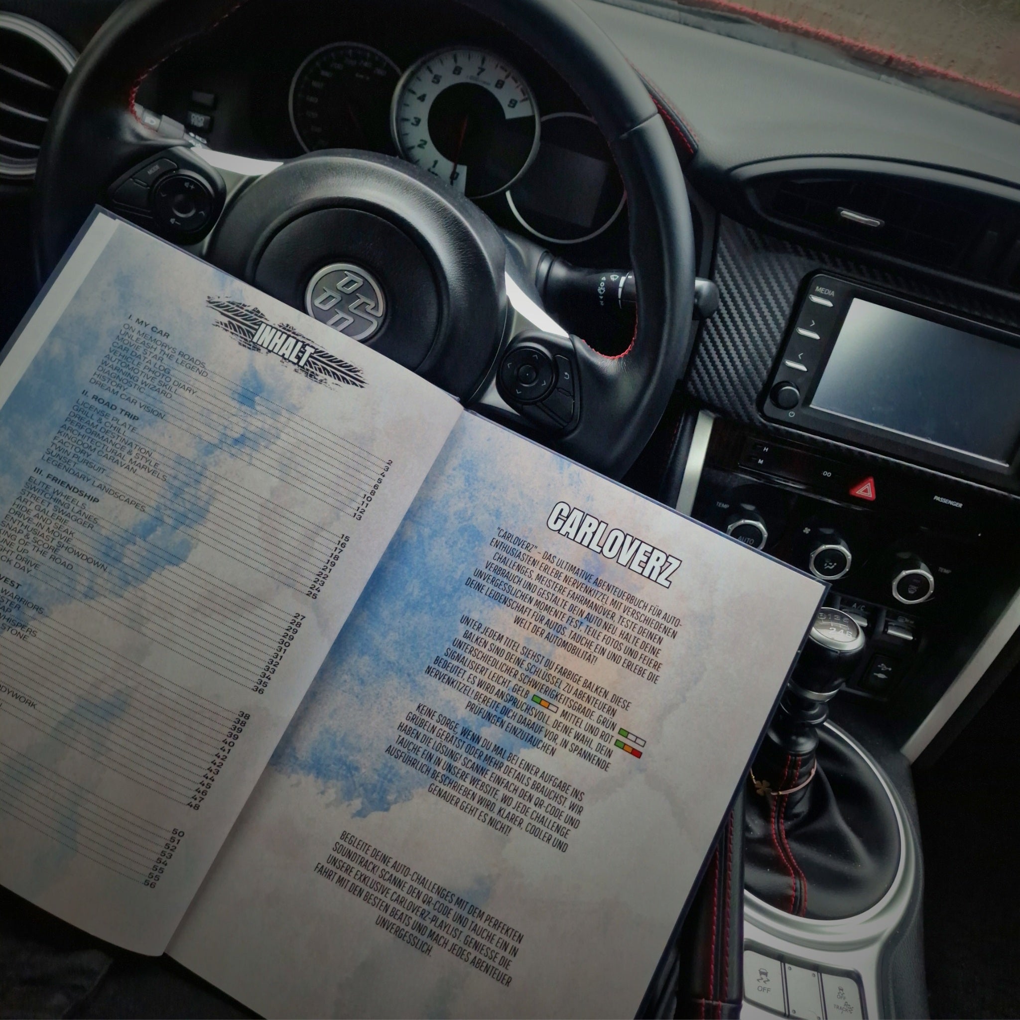 Steig ein, schnall dich an und erleb die Fahrt deines Lebens mit dem Carloverz Challengebuch! Dies ist kein gewöhnliches Buch – es ist dein Ticket zu einer Expedition ins Unbekannte, gefüllt mit Roadtrips, die den Puls beschleunigen, Camping-Abenteuern unter Sternen und vielen weiteren Abenteuern. Zwischen den Seiten findest du auch Aufgaben, die dich dazu bringen, Hand anzulegen und Veränderungen an deinem Auto vorzunehmen. Lerne, wie du eine Reparatur selbstständig durchführst, optimiere dein Fahrzeug und entdecke Mechaniker-Fähigkeiten, die du nie für möglich gehalten hättest. Erforsche versteckte Pfade, lerne neue Tricks und messe dich mit der Zeit. Jede Seite dreht die Drehzahl deiner Begeisterung höher. Bist du bereit, die Grenzen zu sprengen und Geschichten zu schreiben, die noch kein Tacho gemessen hat? Pack das Buch und starte den Motor – das Abenteuer wartet!