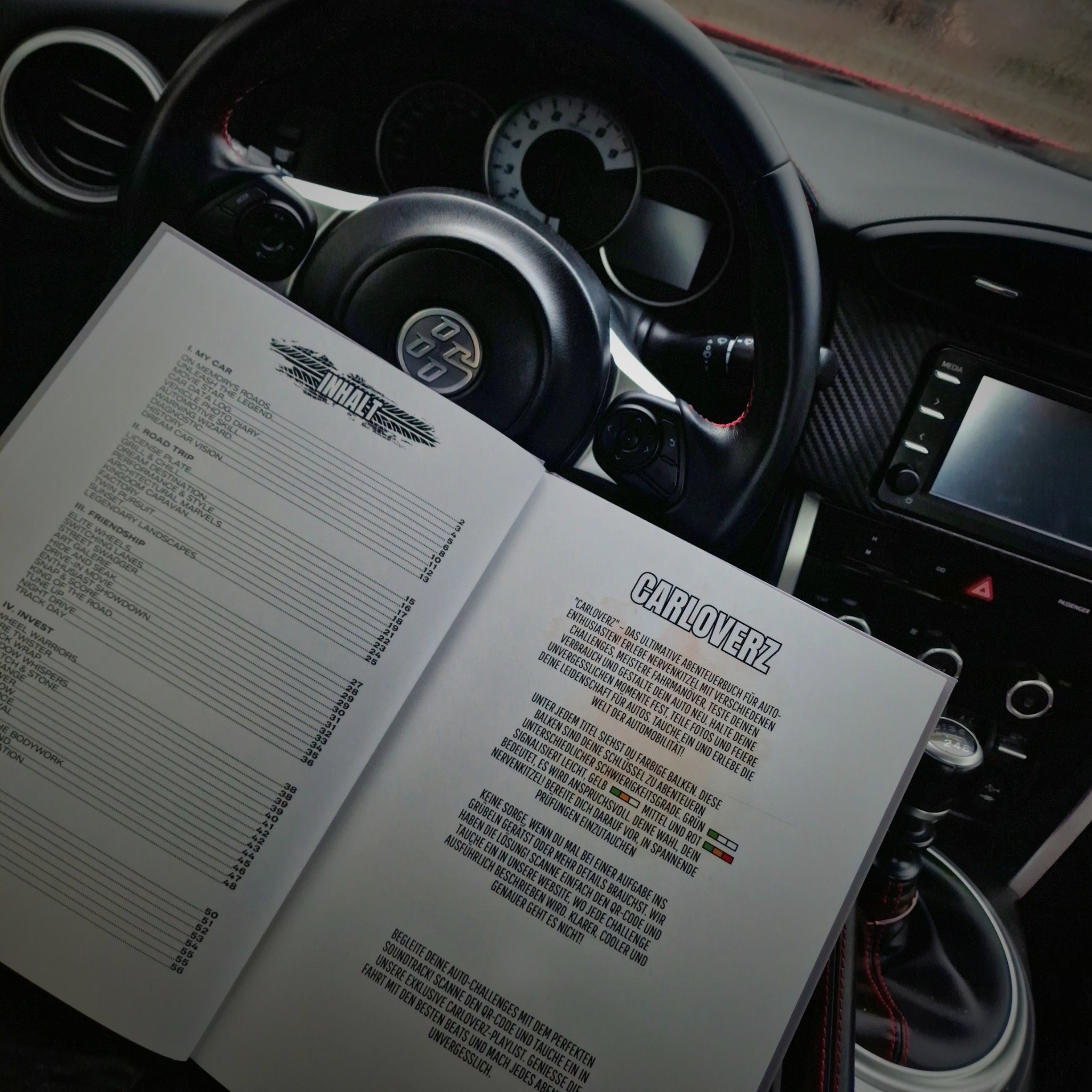 Steig ein, schnall dich an und erleb die Fahrt deines Lebens mit dem CarLoverz Challengebuch! Dies ist kein gewöhnliches Buch – es ist dein Ticket zu einer Expedition ins Unbekannte, gefüllt mit Roadtrips, die den Puls beschleunigen, Camping-Abenteuern unter Sternen und vielen weiteren Abenteuern. Zwischen den Seiten findest du auch Aufgaben, die dich dazu bringen, Hand anzulegen und Veränderungen an deinem Auto vorzunehmen. Lerne, wie du eine Reparatur selbstständig durchführst, optimiere dein Fahrzeug und entdecke Mechaniker-Fähigkeiten, die du nie für möglich gehalten hättest. Erforsche versteckte Pfade, lerne neue Tricks und messe dich mit der Zeit. Jede Seite dreht die Drehzahl deiner Begeisterung höher. Bist du bereit, die Grenzen zu sprengen und Geschichten zu schreiben, die noch kein Tacho gemessen hat? Pack das Buch und starte den Motor – das Abenteuer wartet!